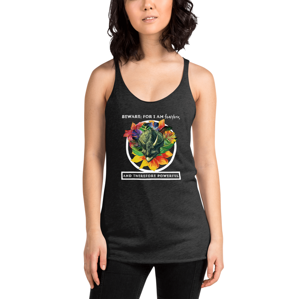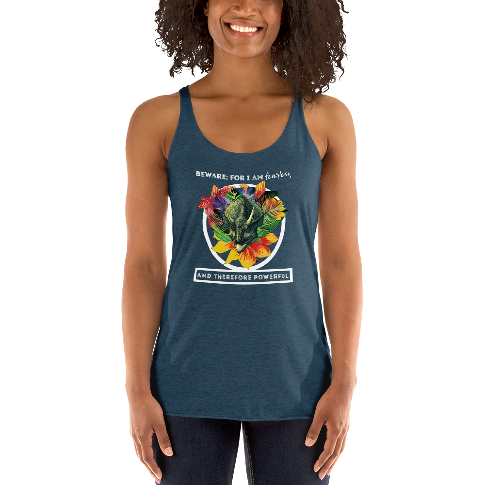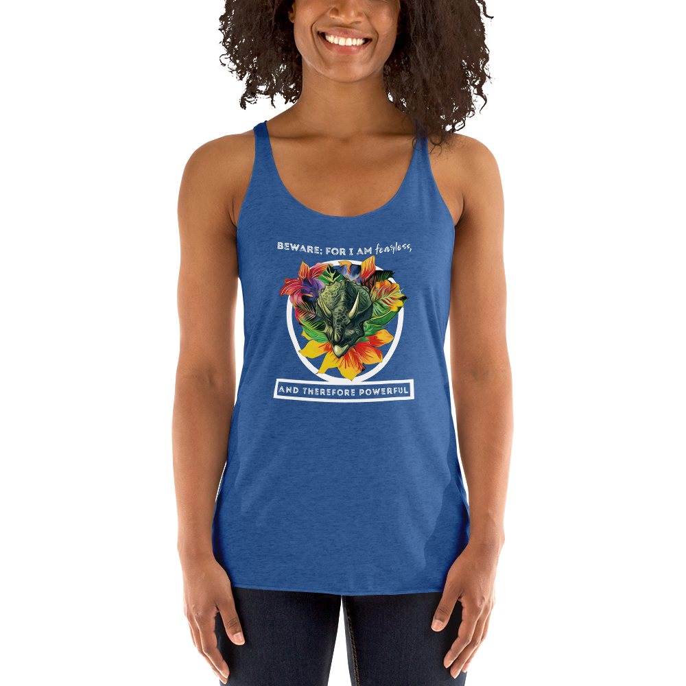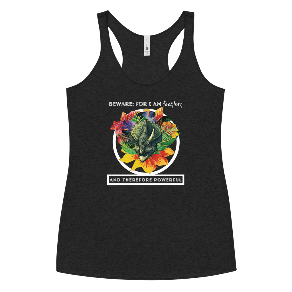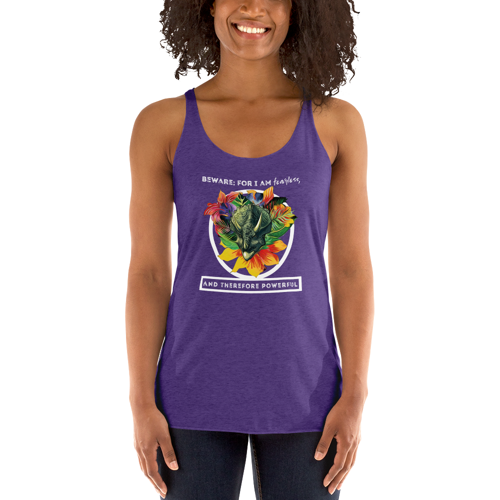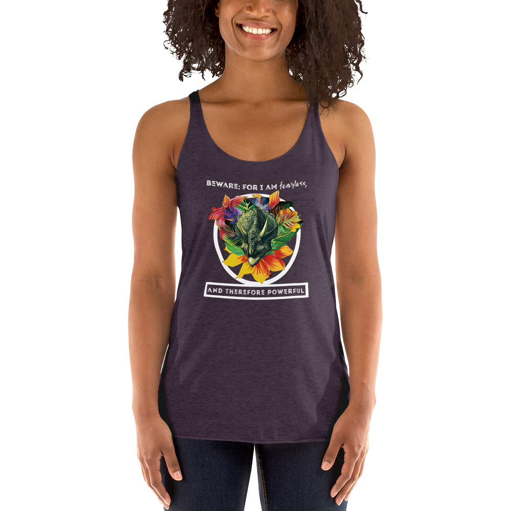 This racerback tank is soft, lightweight, and form-fitting with a flattering cut and raw edge seams for an edgy touch.