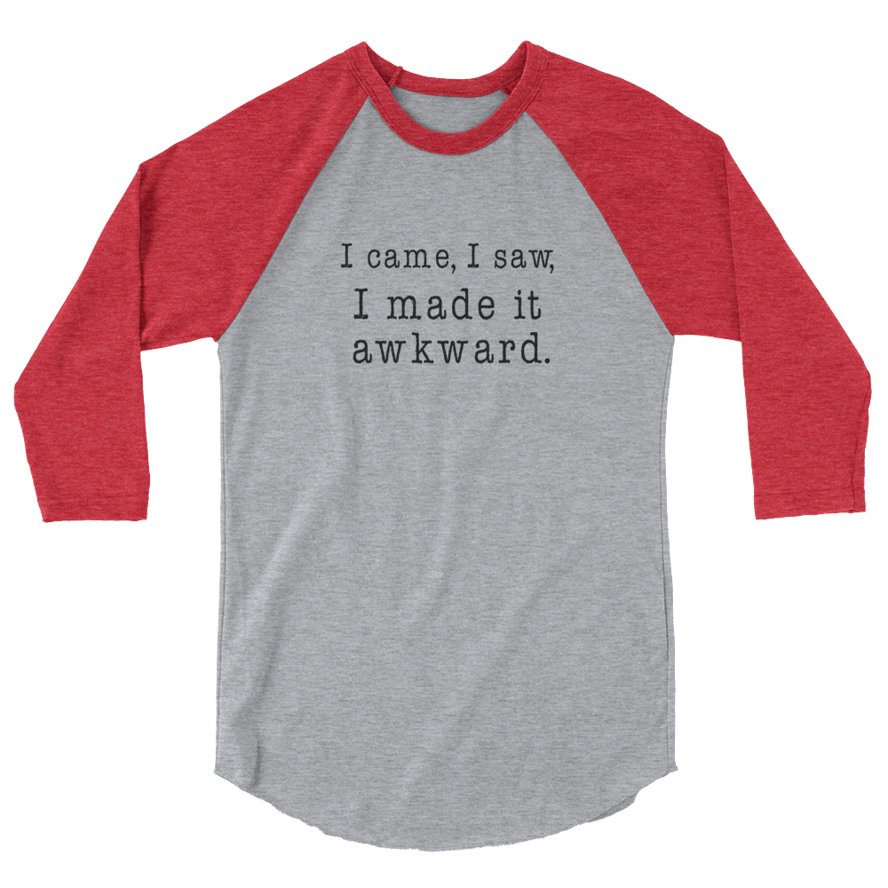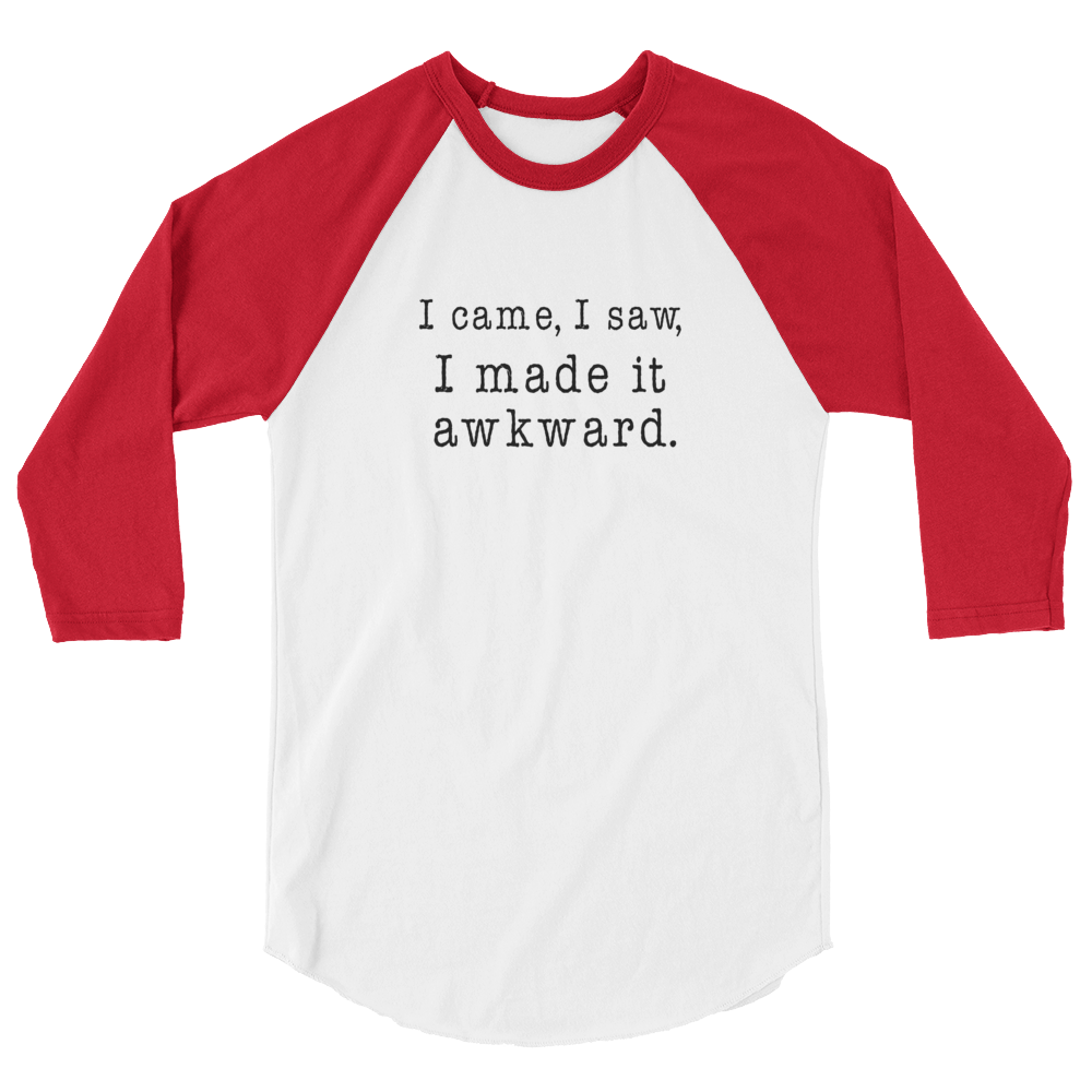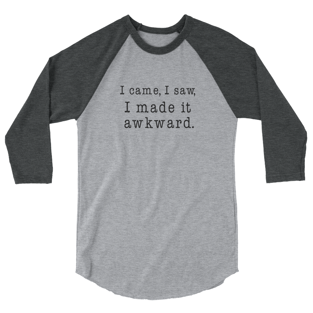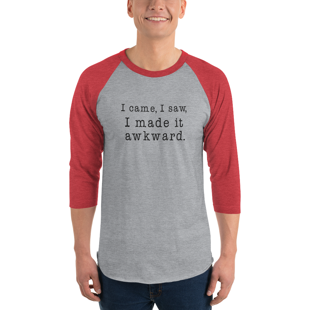 I Made It Awkward 3/4 Sleeve Raglan Shirt Black Text