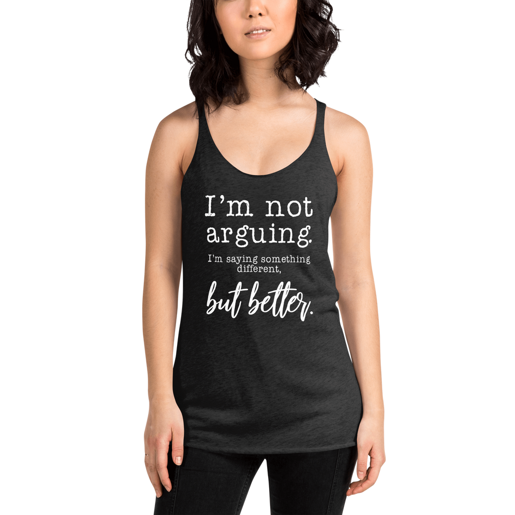 This racerback tank is soft, lightweight, and form-fitting with a flattering cut and raw edge seams for an edgy touch.