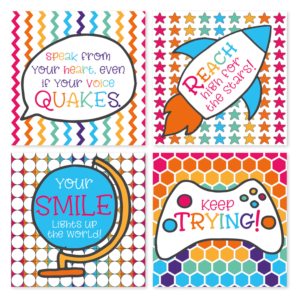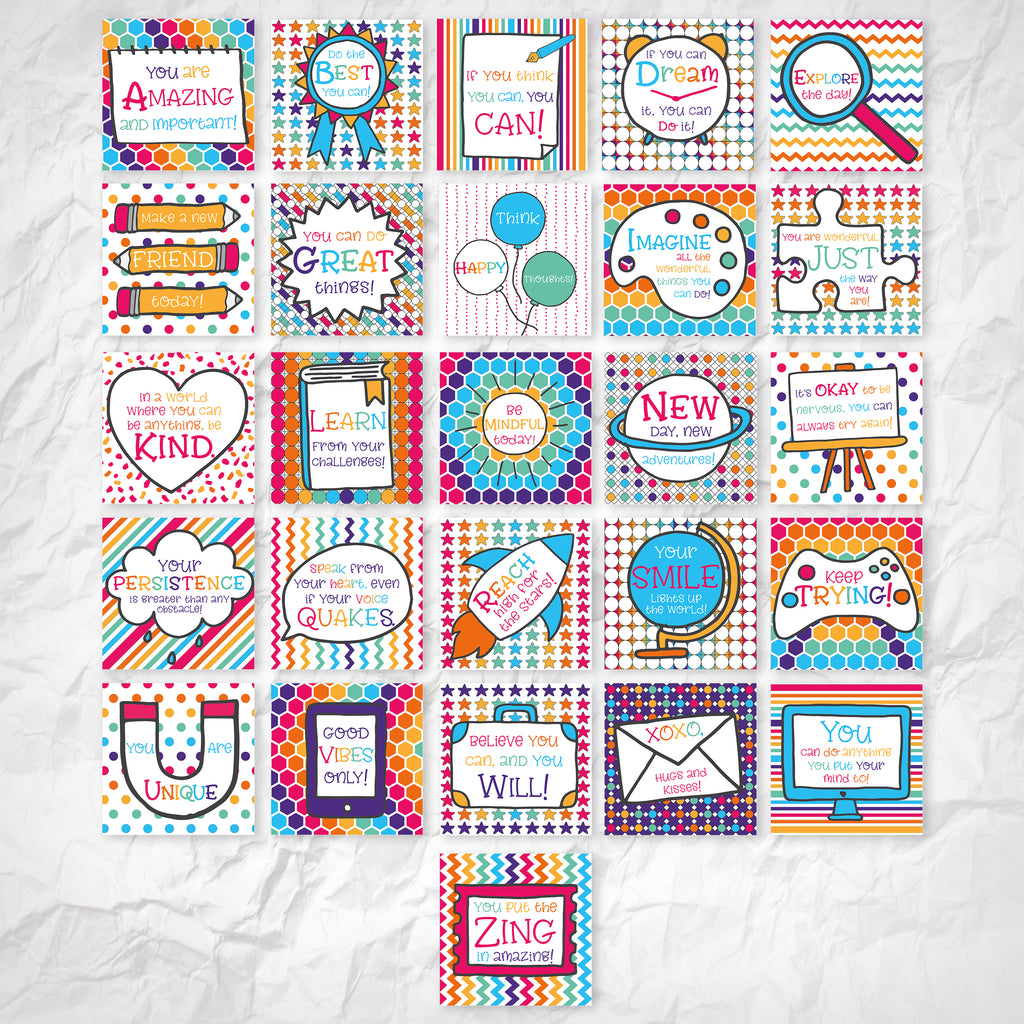 • SIZE: 3" x 3" Note Card size, perfect to pop into a lunch box or on a desk.