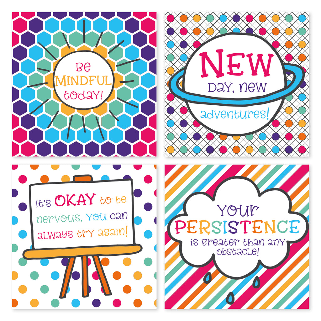 Kids Kind Cards Lunchbox Notes are a colorful way so send a little encouragement! Each note card is 3" x 3" and the back is blank for you to add a personalized message. The set includes 52 cards (2 each of the 26 alphabet designs) which focus on daily uplifts and inspirations.