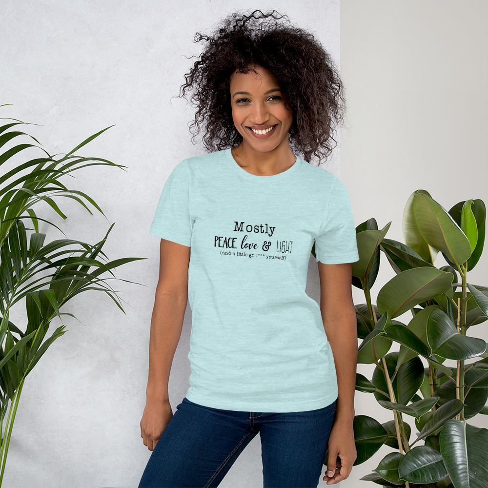 Peace Love Light Short-Sleeve Unisex T-Shirt - Black Text