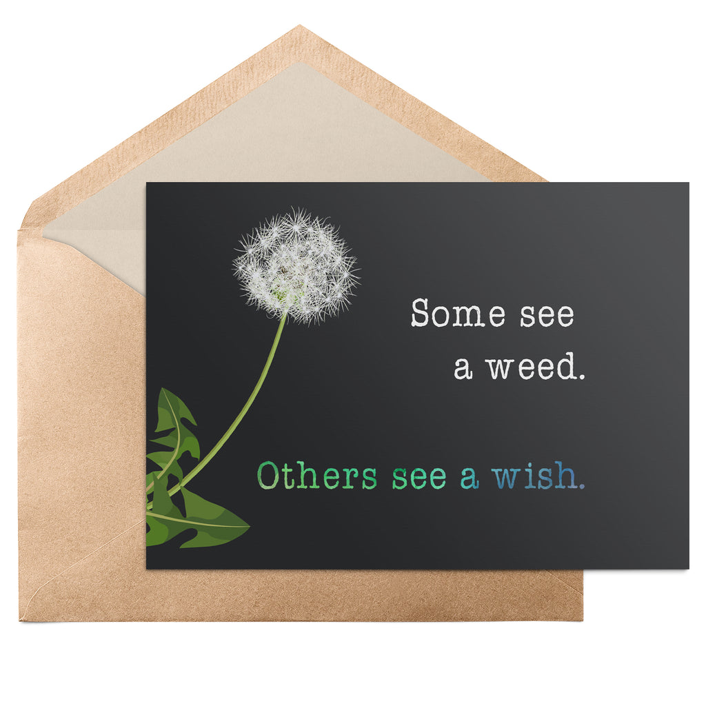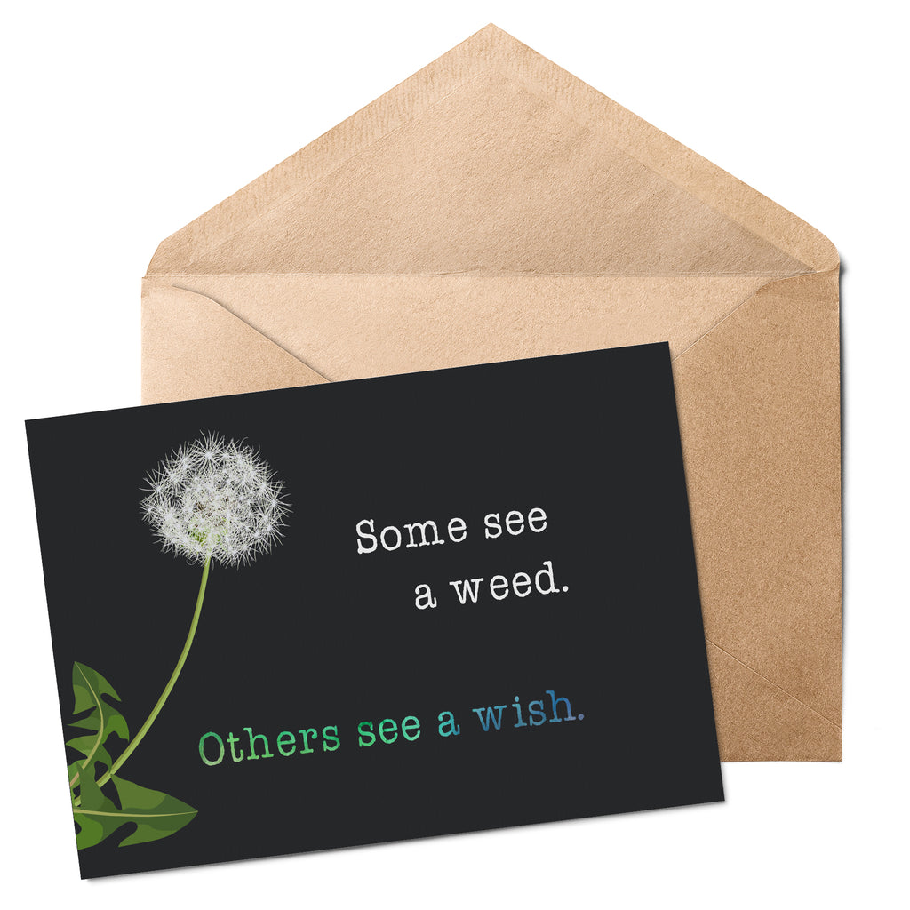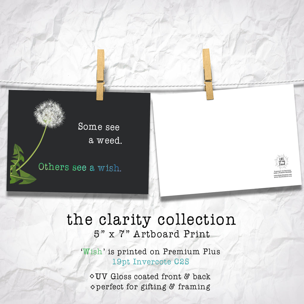 ‘Some see a weed. Others see a wish.’ dandelion design from the clarity collection.