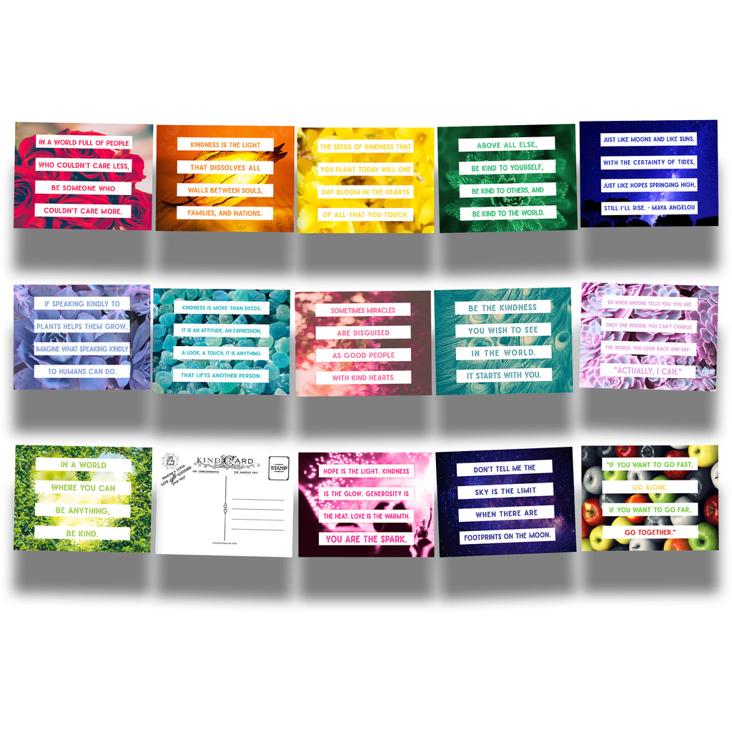 • 14 UNIQUE & COLORFUL DESIGNS in the collection, perfect to send a little kindness to others! Size allows for USPS Postcard Rate Stamps.