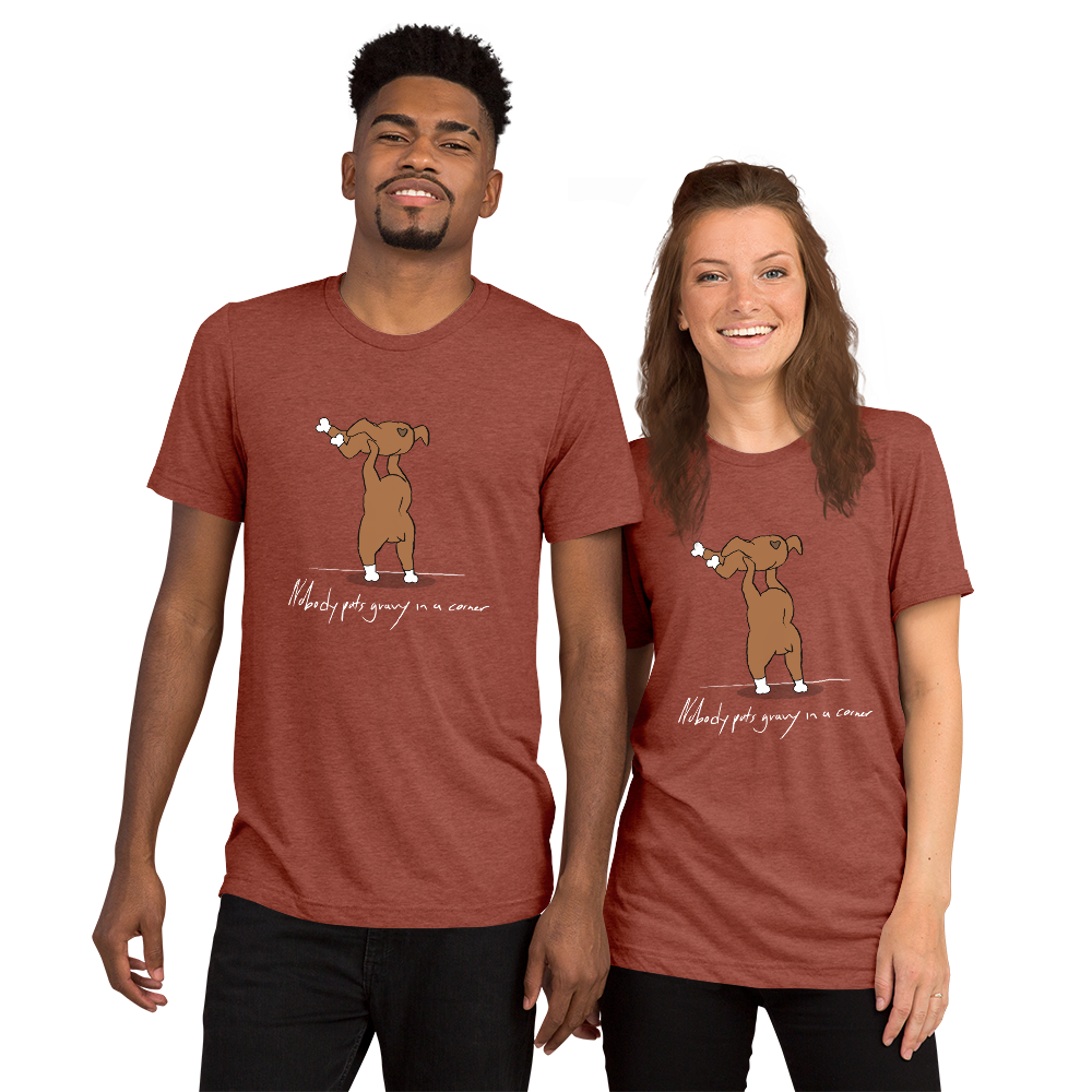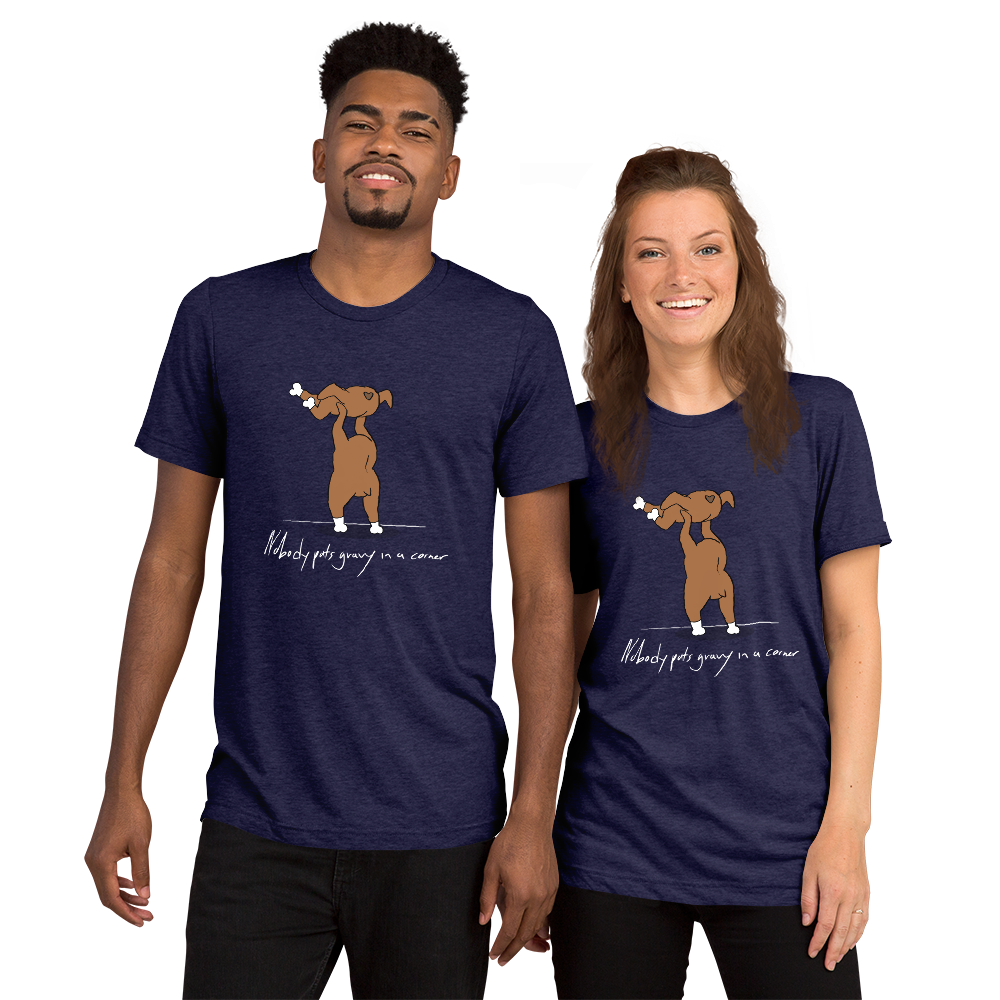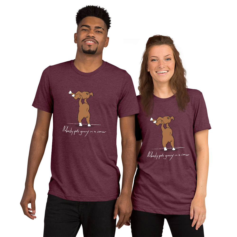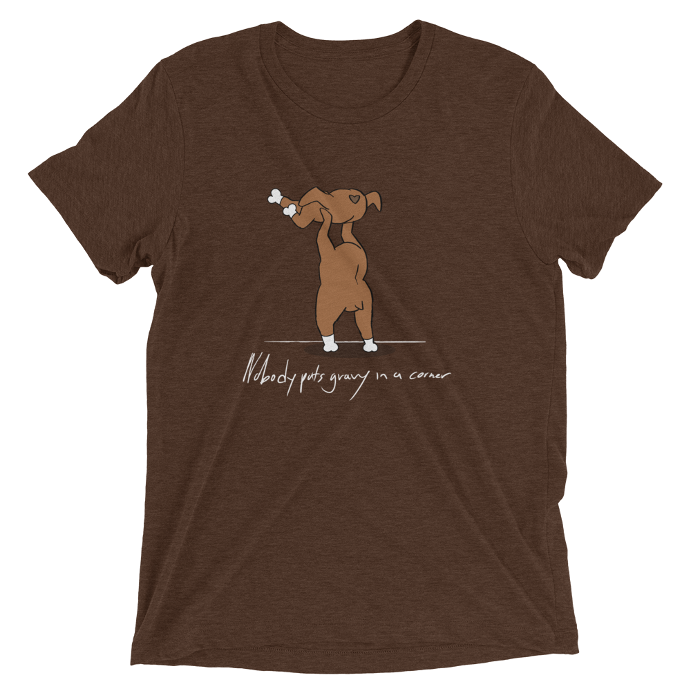 Nobody Puts Gravy In A Corner Short Sleeve Tri-Blend Fitted T-Shirt