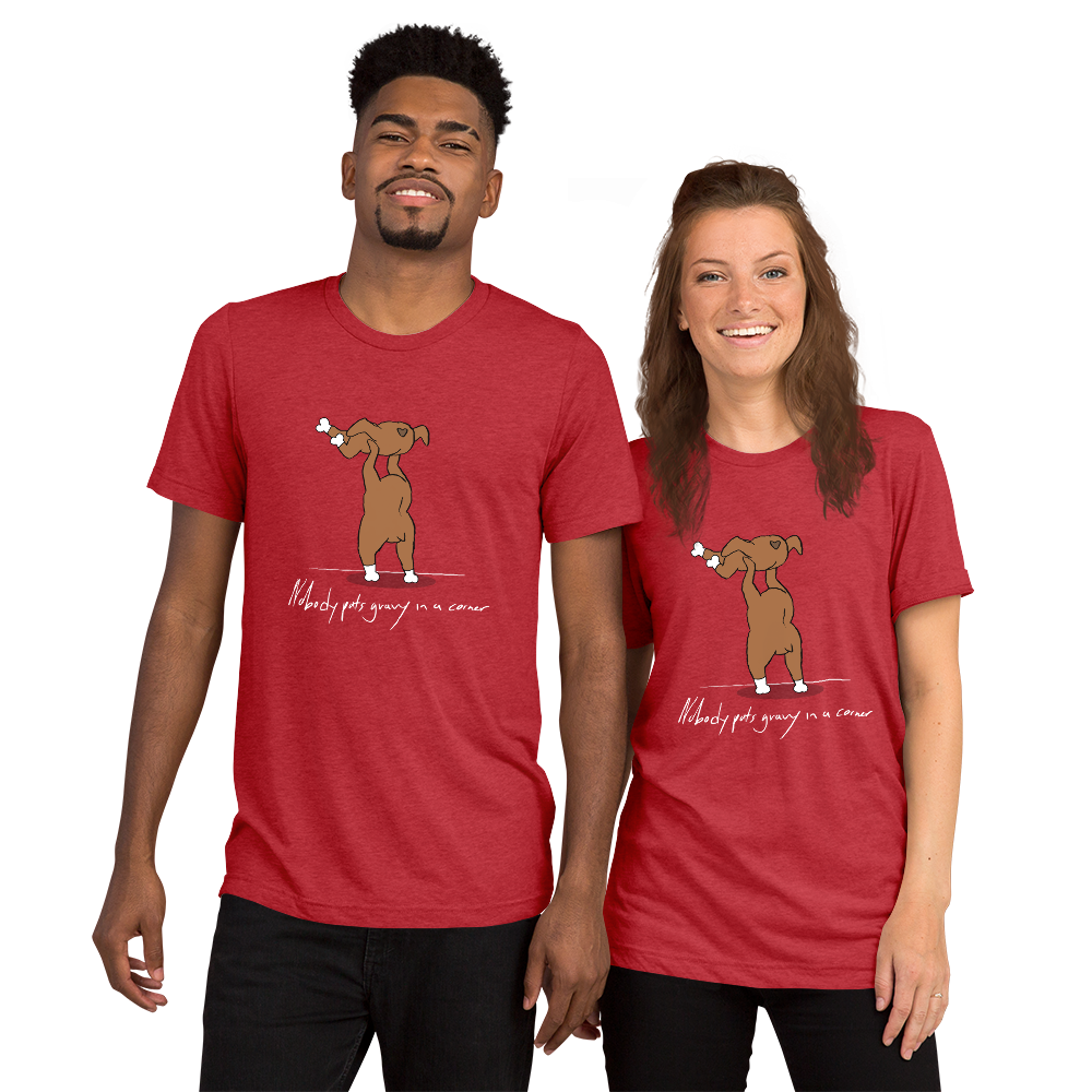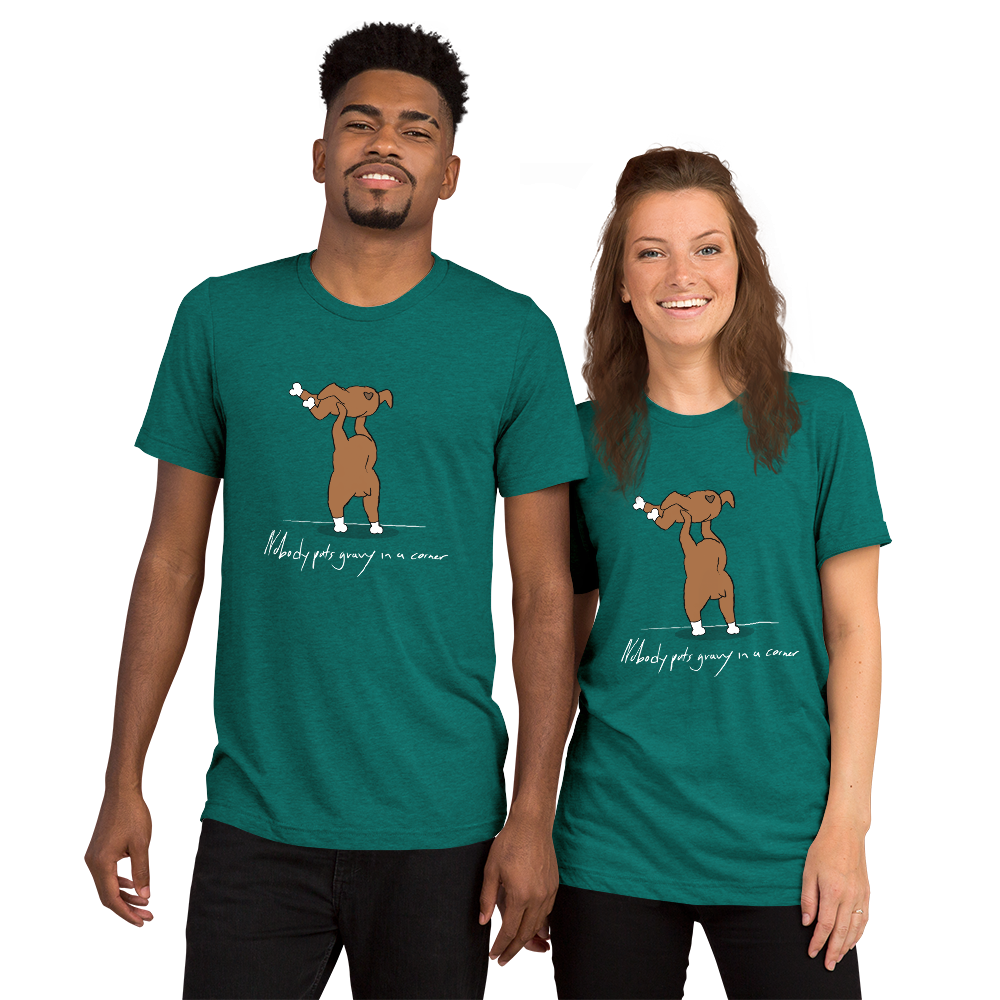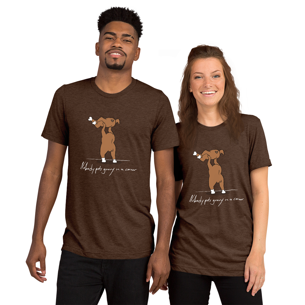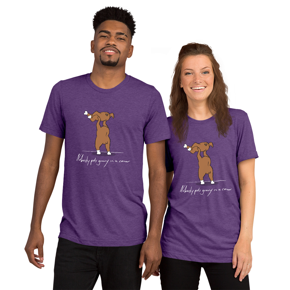 Nobody Puts Gravy In A Corner Short Sleeve Tri-Blend Fitted T-Shirt