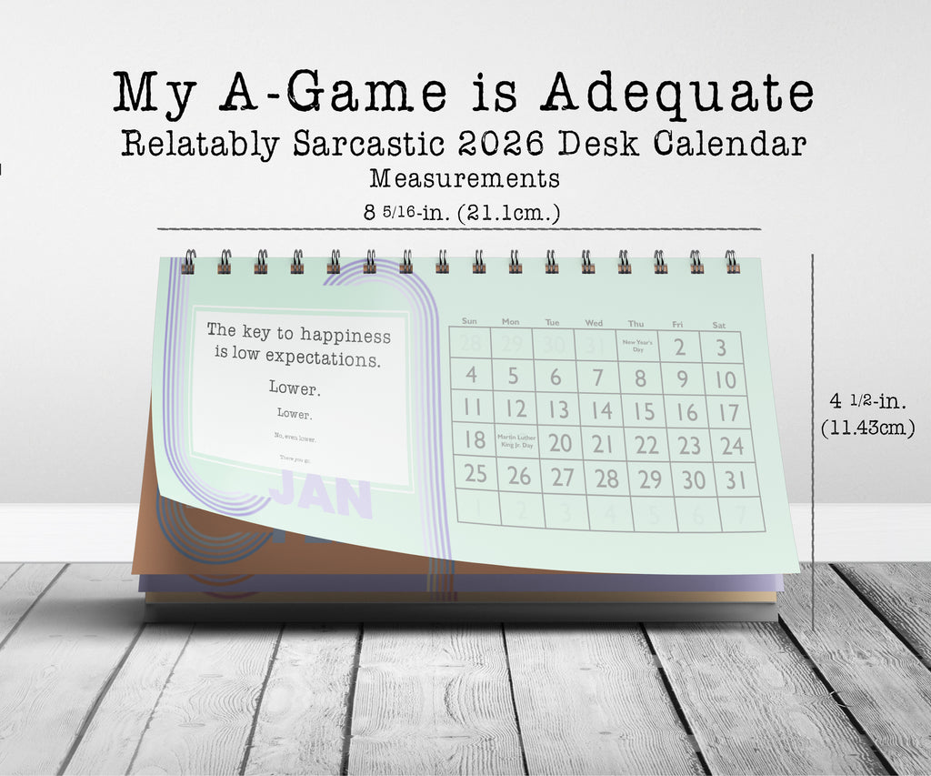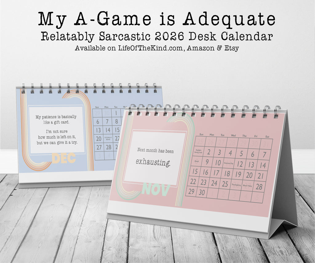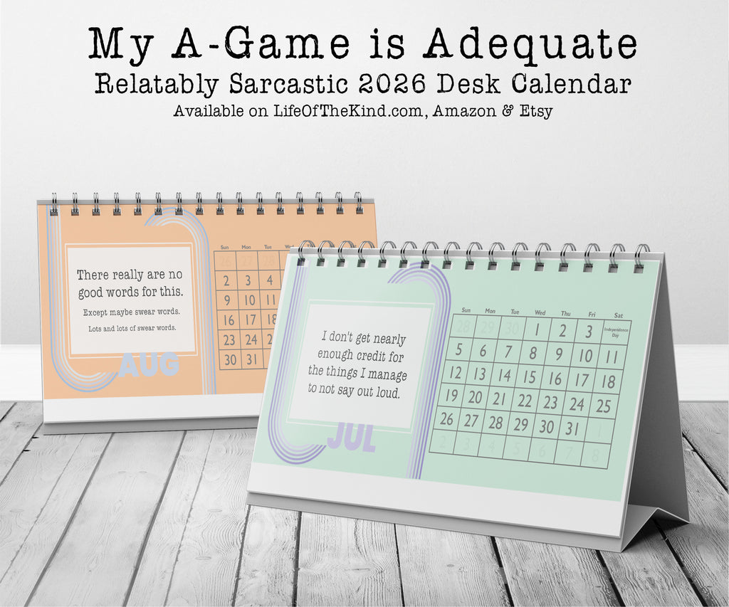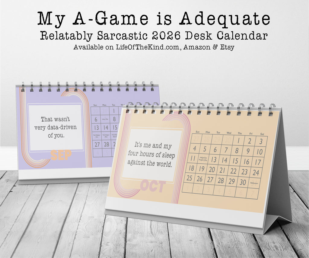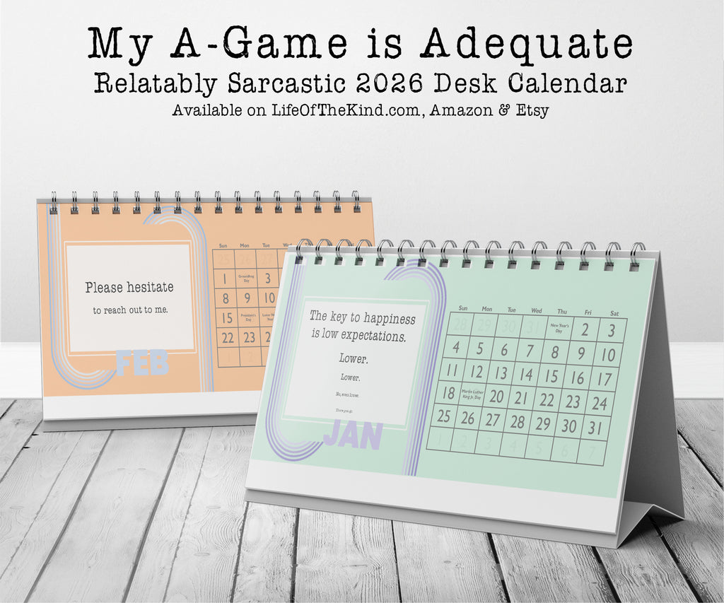 Are you the kind of person who is okay with just giving it your some and need a little snark and humor to get through the day? Then this desk calendar for YOU! It's also the perfect gift for an office gift exchange or for the delightfully sarcastic people in your life. The My A-Game Calendar includes the following relatably sarcastic quotes: