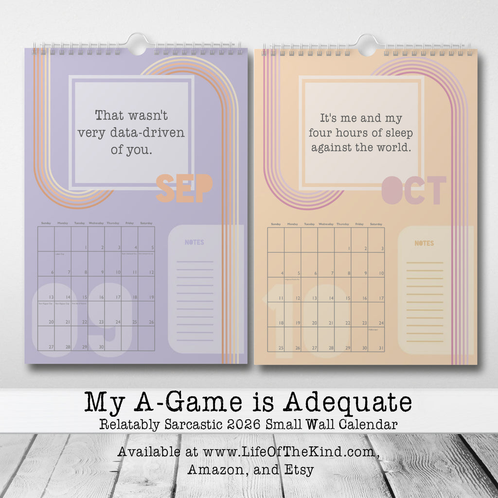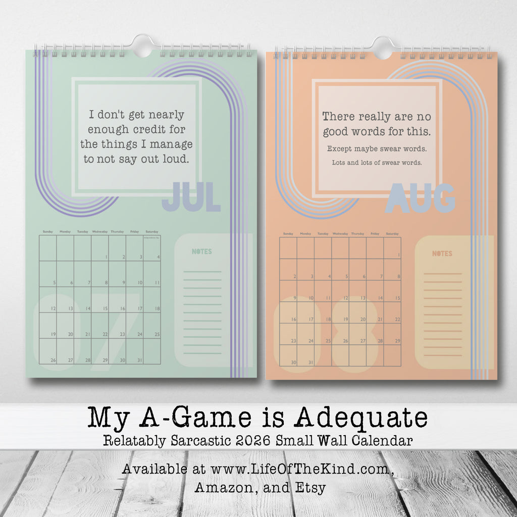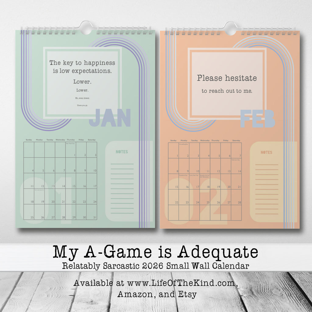 / My A-Game is Adequate 2026 12-Months Small Wall Calendar Relatably Sarcastic
